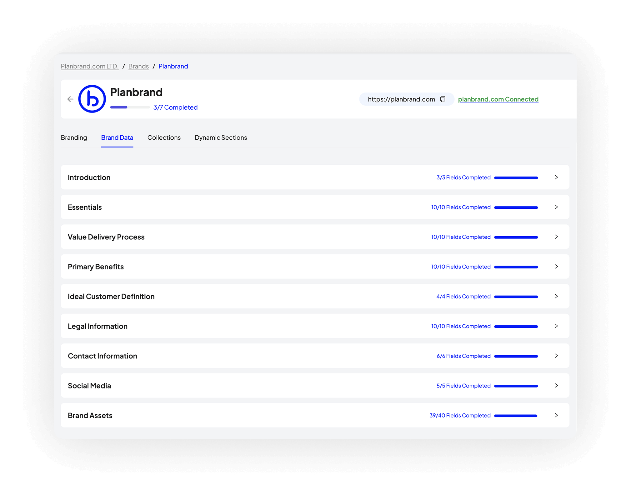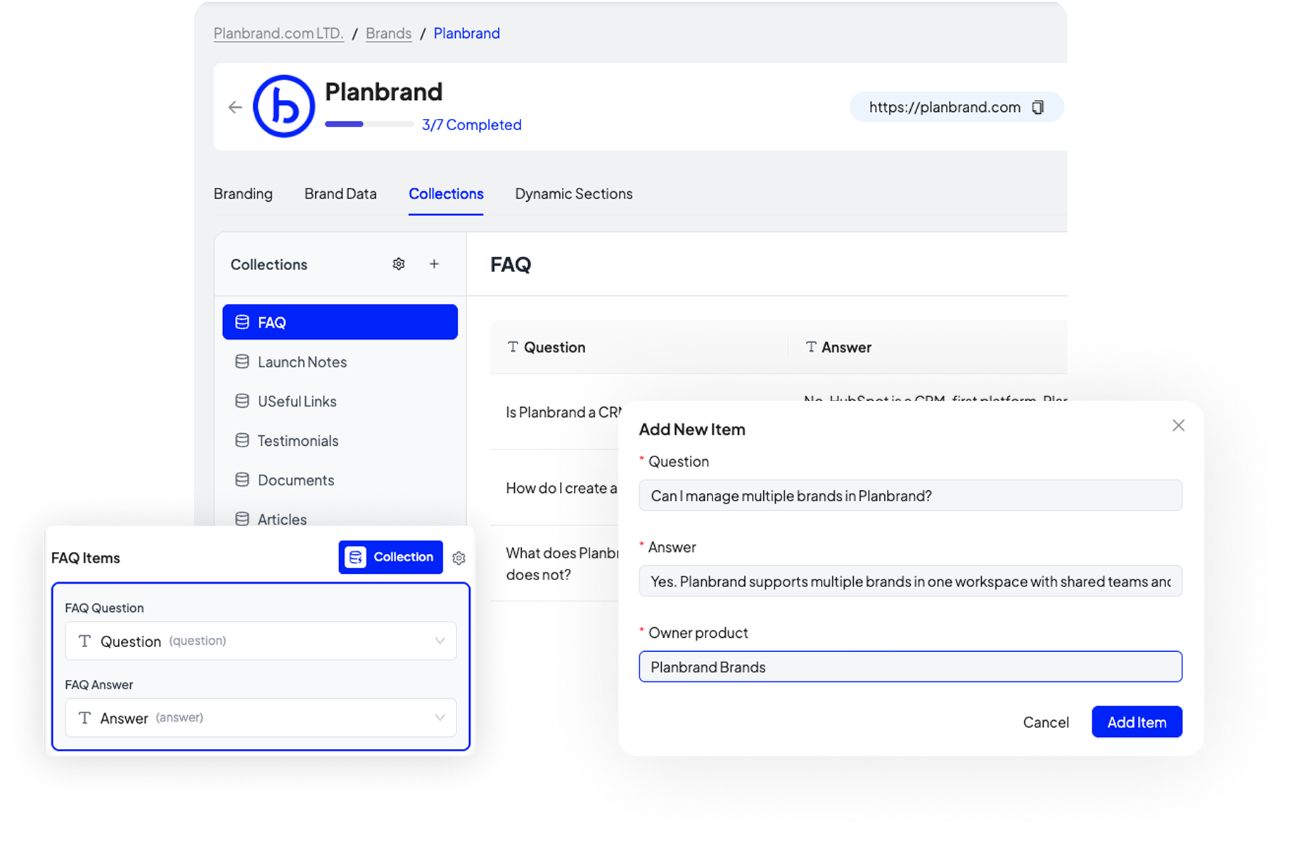 Planbrand lets you create custom collections for anything that matters to your business — questions, answers, links, documents, notes, or structured knowledge your team relies on.