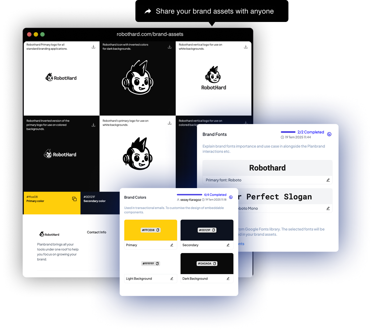 It’s not just the logo. It’s all the small, boring details that rarely change — but always matter. Colours, fonts, tone, links, assets, rules, references. Until now, these things lived in folders, messages, or people’s heads. Your brand data, respected and managed by you.