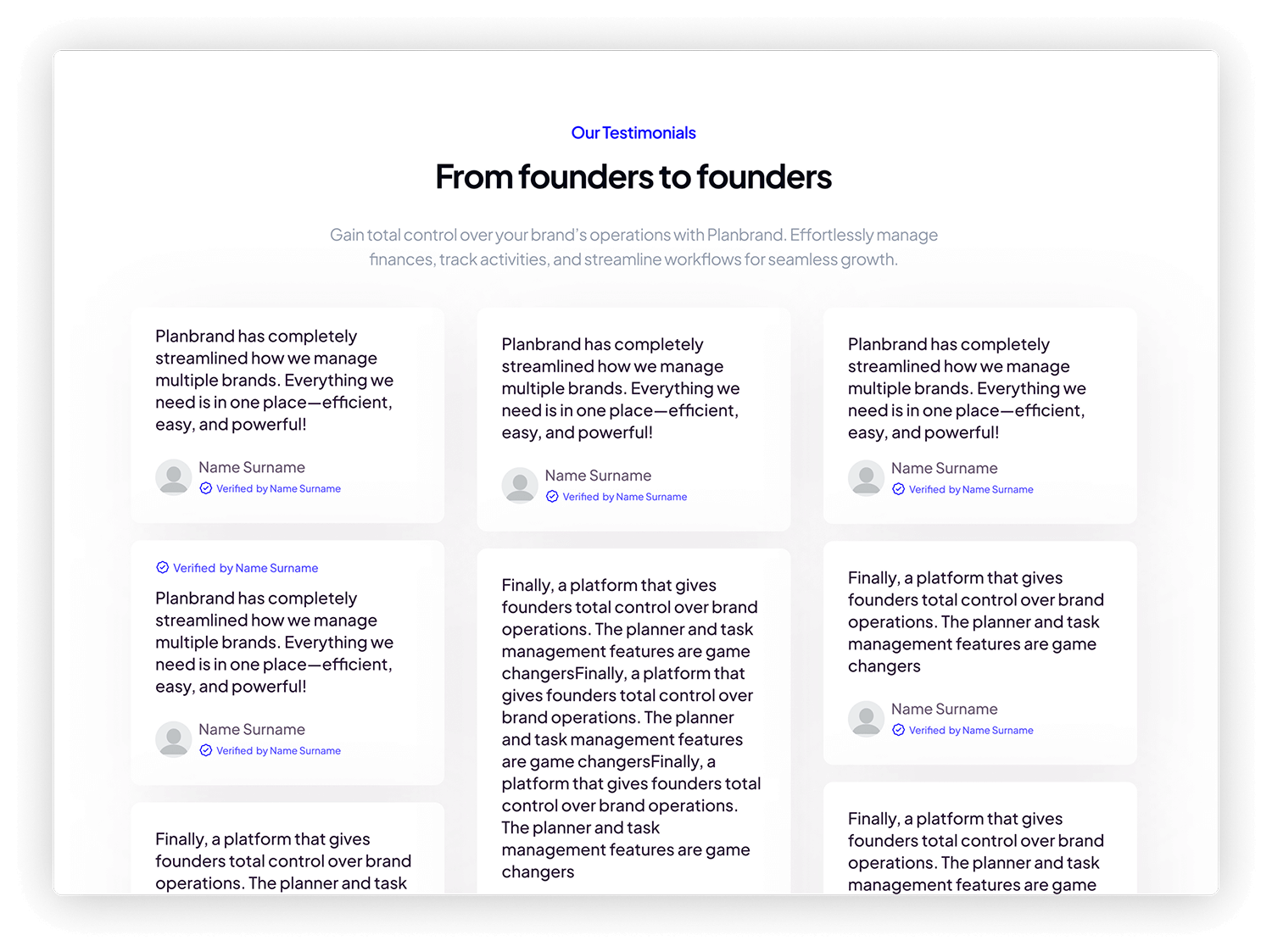 You do not need to design systems or learn complex tools. Planbrand gives you a ready structure from day one.