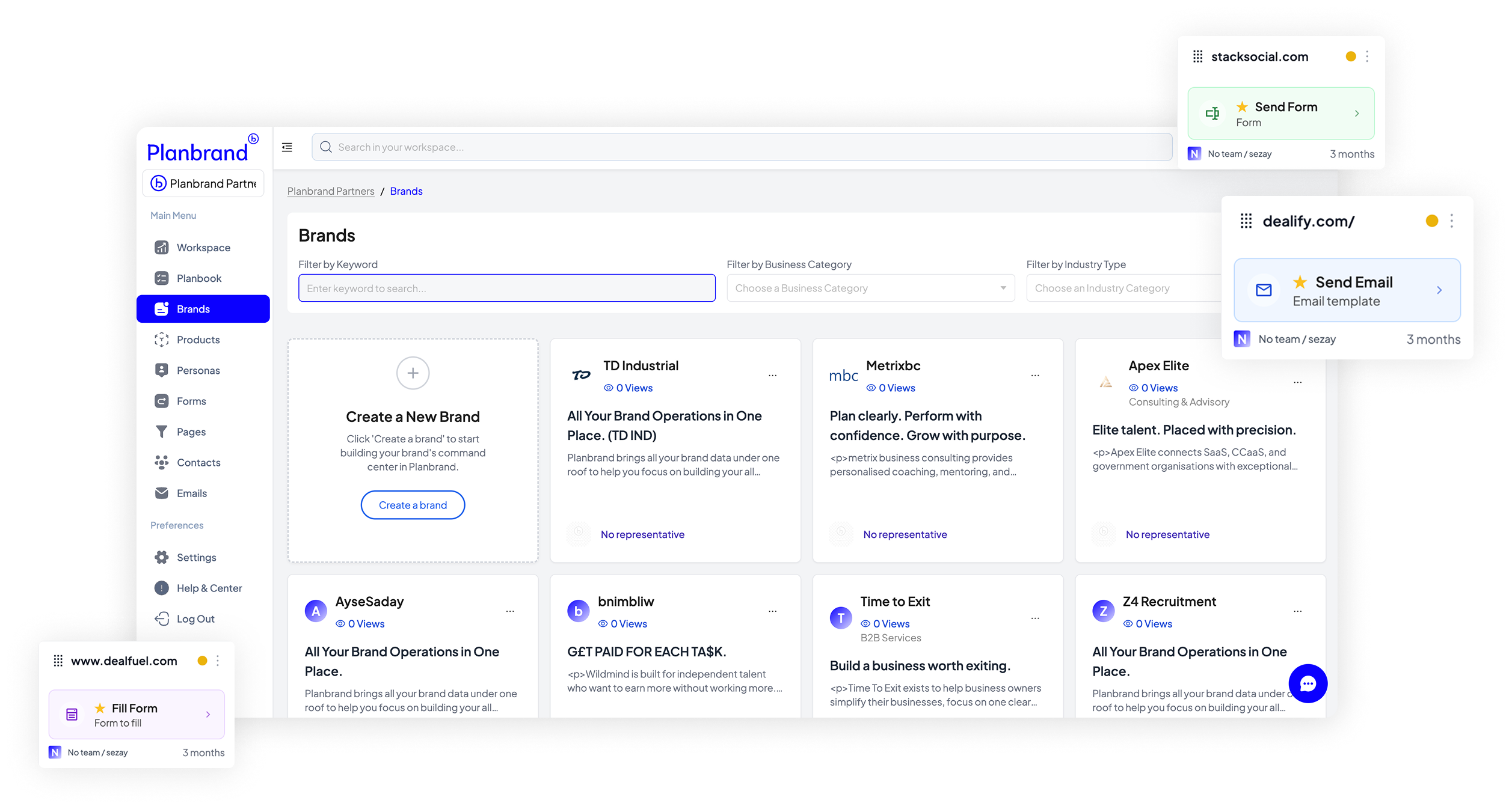 Both handle multiple brands. Planbrand is built for founders running their own brands, while GoHighLevel is designed for agencies managing many clients.